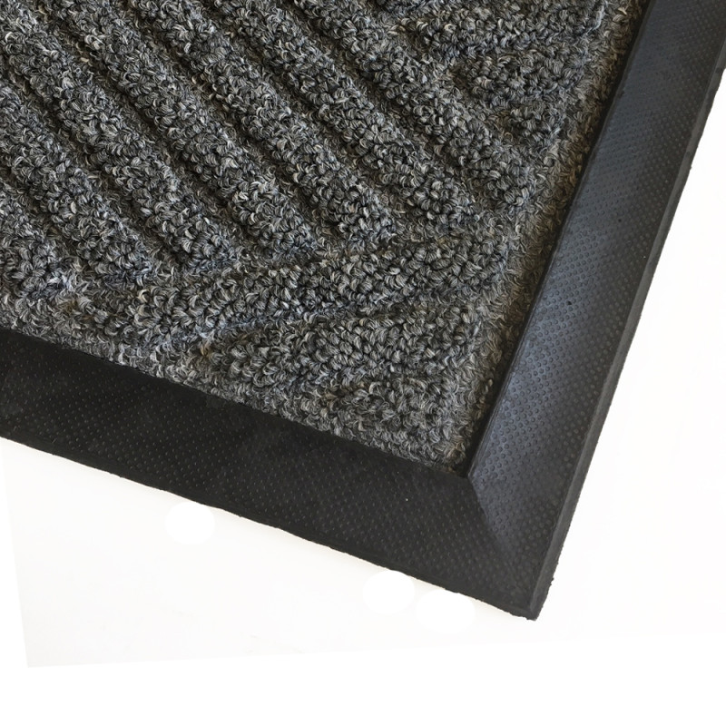 Extremt slitstark skrap-absortionsmatta med gummibaksida och ovansidan av grovt mönstrat polypropylen garn av bästa kvalitet.