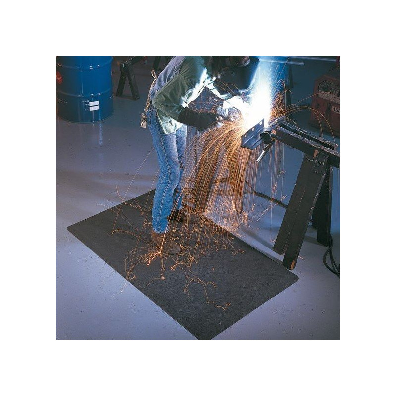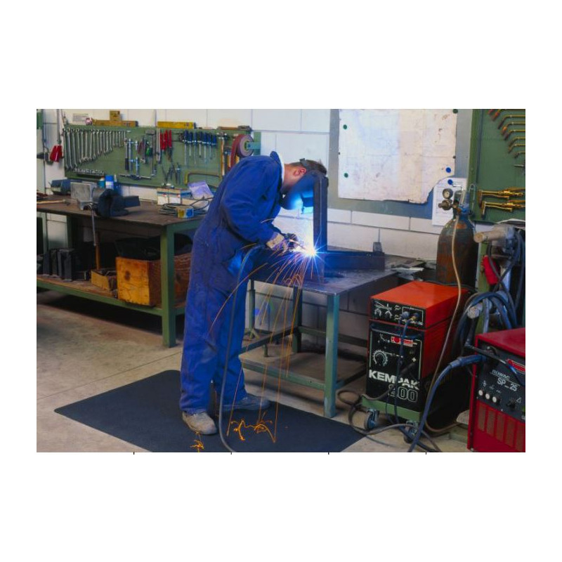 Ergo Weld är speciellt framtagen för arbetsplatser där man slipar och svetsar. Mattan är brandtestad och godkänd enligt klass B1. Ergo Weld har ett ytskick av brandhämmande vinyl och en mjuk baksida för bästa komfort.