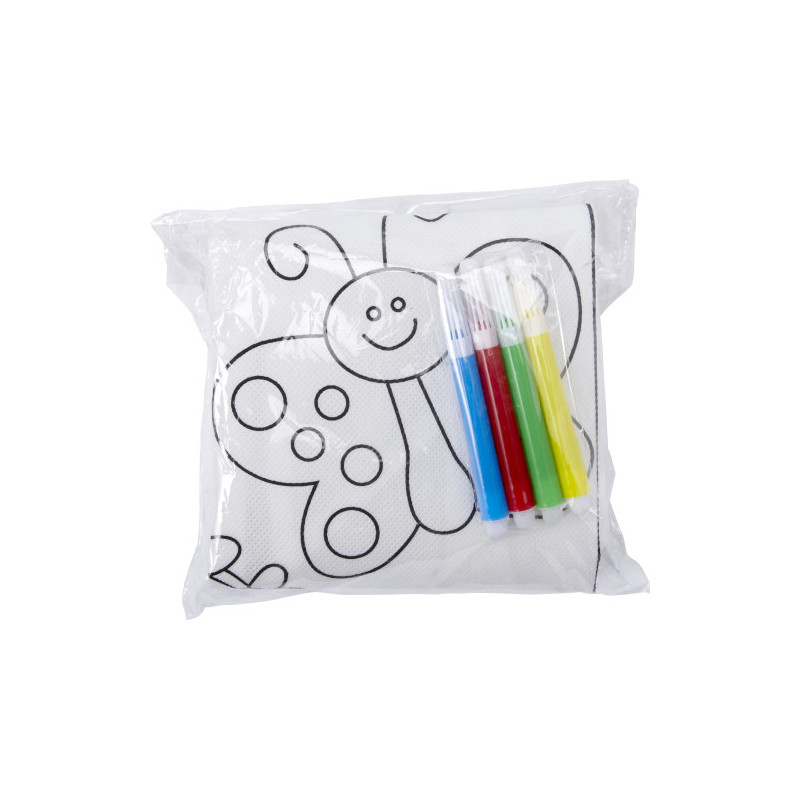 Förkläde i polyester att måla på själv. Levereras med 4 tuschpennor.