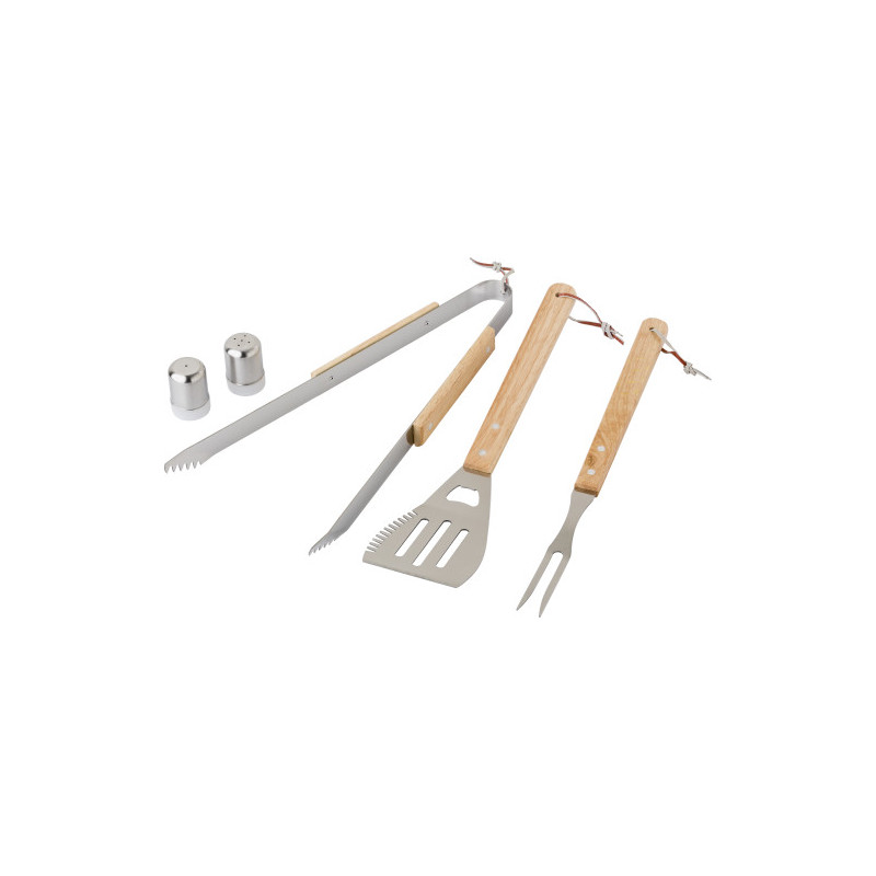 Tredelad grillset i bambu med aluminiumfodral, inklusive: gaffel, stekspade...