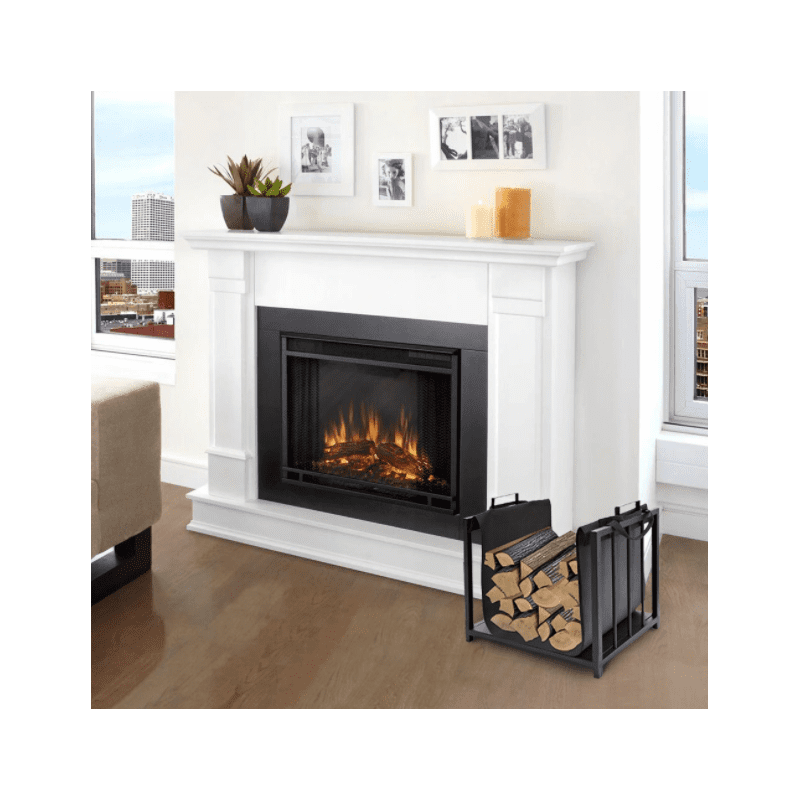🔥 Vedkorg & vedhylla 50x50,5x37 cm – Svart gjutjärn, elegant och praktisk | Två-i-ett för kamin & öppen spis | 👉 JV80.se