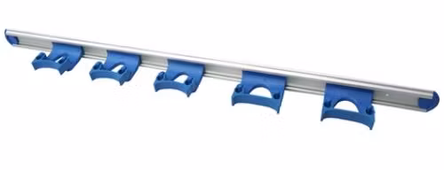 Vägghållare 900 mm är en robust, rymlig och hygienisk förvaringslösning som gör det enkelt att organisisera många redskap på en och samma plats. Den extra bredden på 900 mm ger gott om utrymme för borstar, skaft, skrapor och andra städverktyg — perfekt för professionella miljöer där ordning och struktur är avgörande.