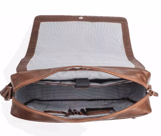 Väskan har ett praktiskt ytterfack framtill och ett dragkedjefack baktill för snabb åtkomst till det du använder ofta. Den justerbara och avtagbara axelremmen gör att du kan bära väskan precis som du vill, och det vadderade laptopfacket skyddar din dator upp till 15,6”. Finns i både cognac och svart.