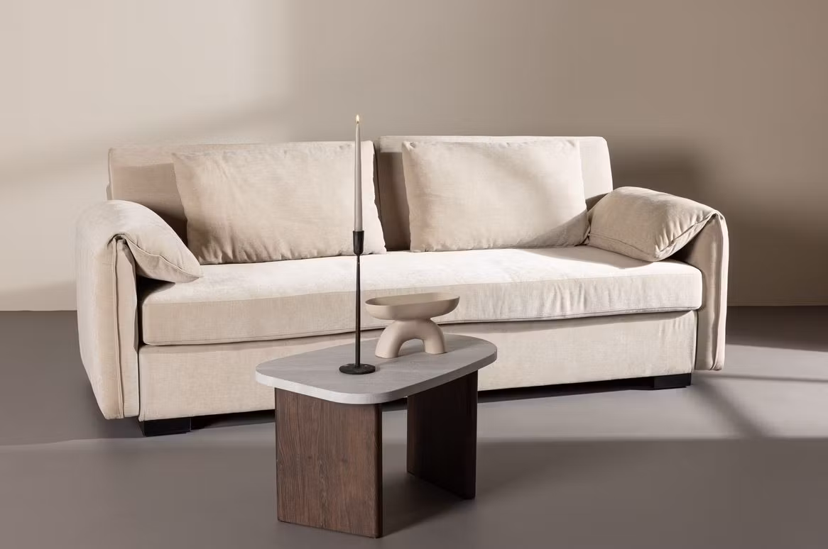 Det lugna beigea polyestertyget ger rummet en harmonisk ton och gör Malva enkel att matcha med bĂ„de moderna och klassiska inredningsstilar. Med sitt generösa sittdjup och sin höga rygg Ă€r Malva en plats att landa pĂ„ efter en lĂ„ng dag â en soffa som bjuder in till bĂ„de avkoppling och umgĂ€nge.