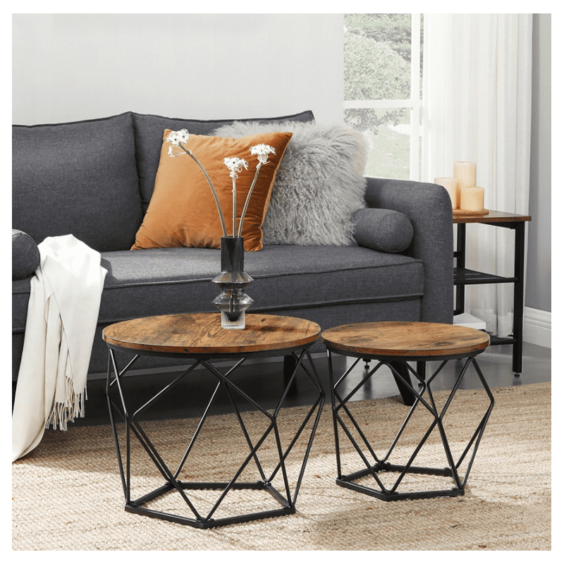 2 st industriella soffbord ingår. Starka stålramar och spånskiva av hög kvalitet för att ge ditt vardagsrum en makeover!