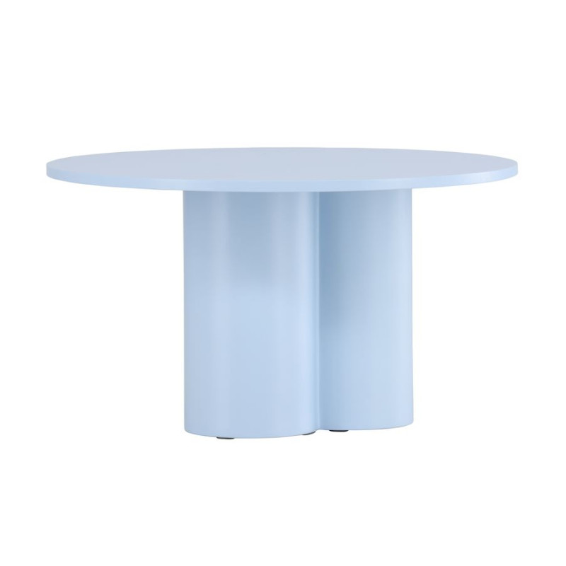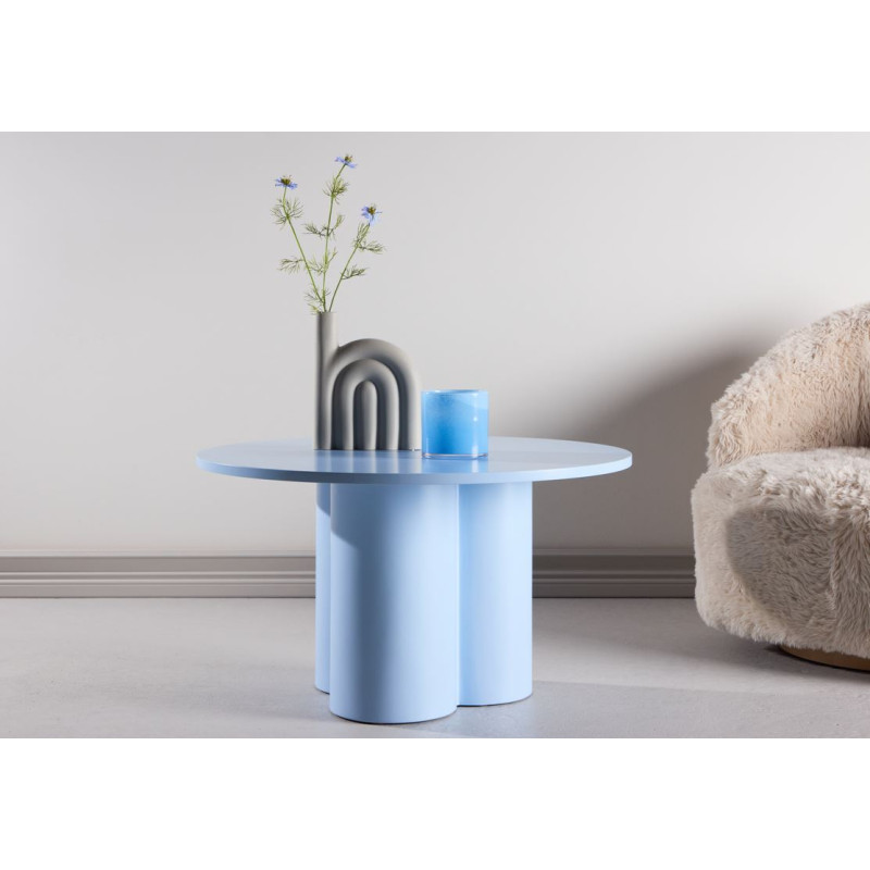 Upptäck Olivia soffbord i ljusblå MDF – ett stilrent runt bord på 80 cm som kombinerar charmig design, funktion och modern färgton för ett harmoniskt vardagsrum.