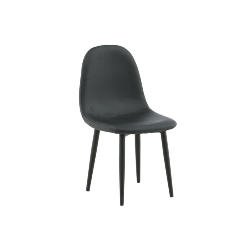 Matstol för barn i en helklädd design, stomme och ben i svart pulverlackerad metall samt med en lätt rundad rygg och sits i stoppad svart konstläder med vit dekorsöm. Lättare montering krävs. OBS! Säljes endast i 2-pack.