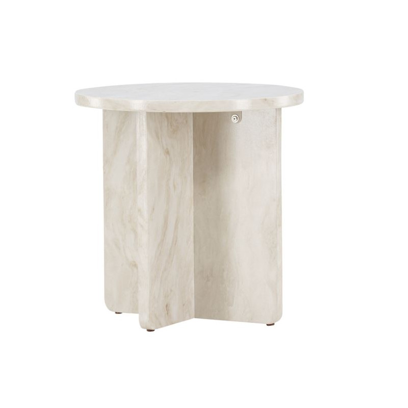 Ålesund sidobord är ett stilfullt och praktiskt tillskott till ditt hem. Med sina mått på 50*50 cm är det perfekt som ett sidobord bredvid soffan eller sängen. Den rundade bordsskivan har en diameter på 50 cm, vilket ger gott om plats för att visa upp en vacker vas med blommor eller andra dekorativa föremål. Bordet är utfört i en vacker beige färg som smälter in i olika inredningsstilar. Dess skandinaviska och moderna design ger rummet en fräsch och elegant känsla. Tillverkat av MDF-material med en marmorlook, kombinerar Ålesund sidobord stil och hållbarhet på ett fantastiskt sätt. Detta söta sidobord är inte bara estetiskt tilltalande utan också funktionellt. Du kan enkelt använda det som en praktisk yta för att placera dina vardagliga föremål eller som en fokuspunkt med en vacker blomsterarrangemang. Fyll ut ditt rum med en touch av skandinavisk elegans och modern stil genom att lägga till Ålesund sidobord. Det kommer definitivt att höja både utseendet och funktionaliteten i ditt hem.