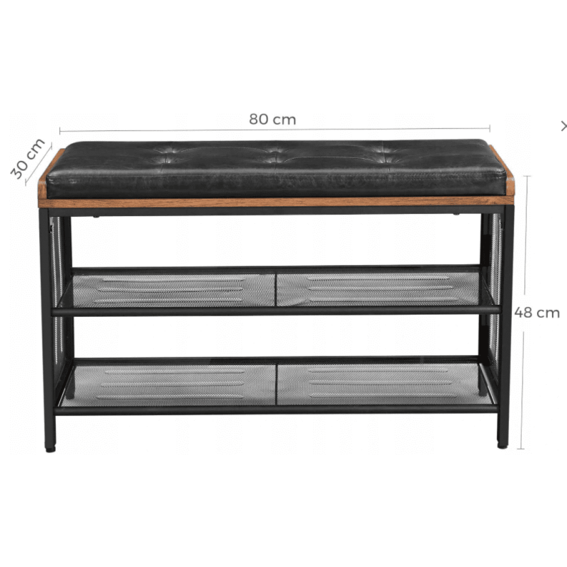 Skohylla med sittbänk, 2 hyllor, rustik vintage 80x30x48 cm