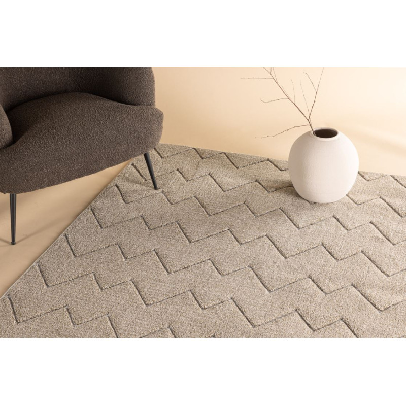 Denna stilrena vita och bruna mattan är designad för att passa perfekt in i moderna heminredningar, och den kommer definitivt att ge en touch av sofistikation till ditt rum. Med sitt distinkta zick-zack mönster är Fia inte bara ett funktionellt tillskott utan också en inredningsdetalj som förhöjer estetiken i vilket rum som helst. mattan har en kort lugg, vilket gör den lätt att rengöra och hålla fri från ludd och damm. Du behöver inte längre oroa dig för smuts som tränger in i mattan - den här mattan ger dig den perfekta kombinationen av stil och funktionalitet. Så låt ditt hem glänsa med denna moderna, stilrena matta som är enkelt att underhålla och samtidigt ger en fräsch och luftig känsla. med med 2 storlekar som den erbjuder Fia den perfekta storleken för ditt utrymme. Oavsett om det är i vardagsrummet, sovrummet hallen eller under ett matbord, kommer denna matta att skapa en harmonisk balans och ge en mysig känsla och omedelbar visuell effekt! Mattan är en del av serien Fia som kommer i olika storlekar och färger, spana in för att hitta din favorit!
