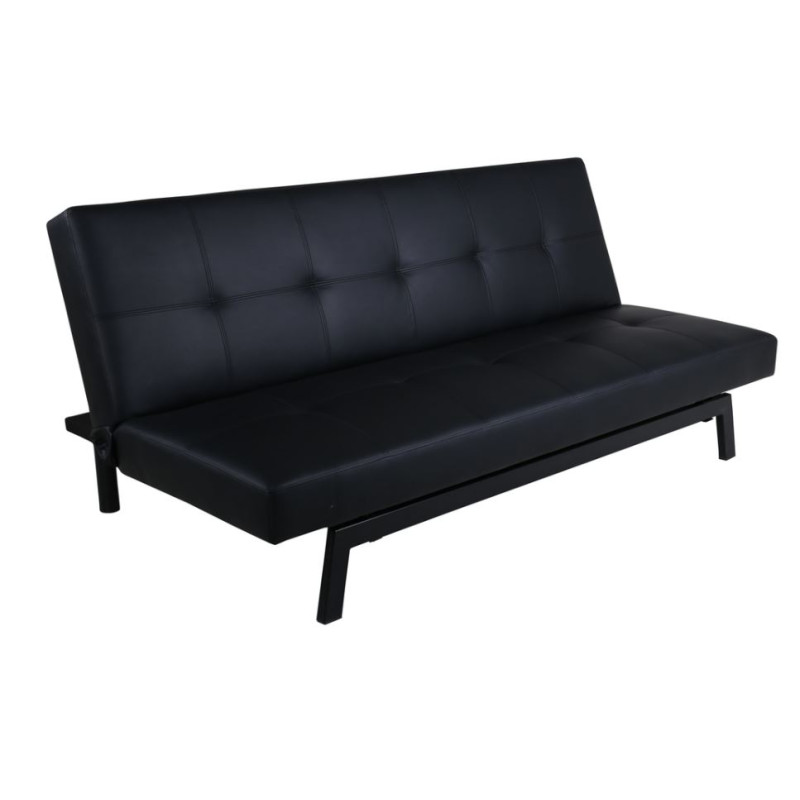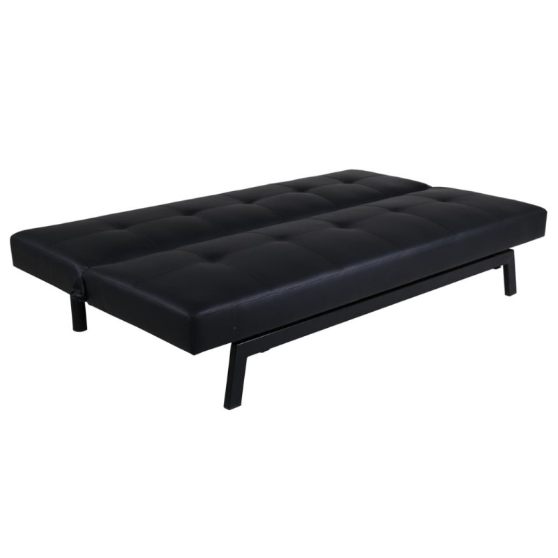 Enkelt och smidigt förvandlar du din trendiga 2-3sitssoffa till en bekväm schäslong eller skön dubbelsäng - perfekt för mysiga filmkvällar eller övernattande gäster! Bodil bäddsoffa har en genomtänkt design med raka nordiska former, enkel utformning och dekorativt djuphäftat mönster som skapar en modemedveten helhet i vardagsrummet. Tillverkad i slitstarkt konstläder i svart kulör och ben i trä. Ett smart och snyggt tillskott i hemmet helt enkelt. Tips för Konstläder: Vid svåra fläckar kan en fuktad bomullstrasa och ett medel avsett för rengöring av ByCast & PU användas, prova först på ett icke synligt område då vissa medel kan ha olika sammansättningar. Torka av och polera med en mjuk bomullstrasa för att återställa möbelns högblanka yta.