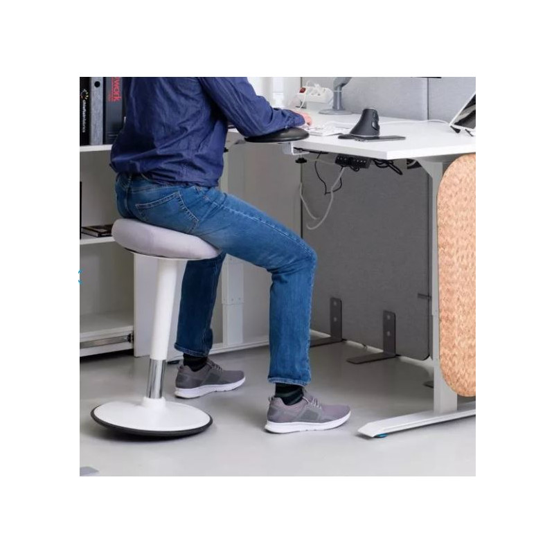 Sitsen har rundade hörn på framsidan vilket gör att man sitter mer bekvämt och naturligt när benen möter marken. Balanspallen främjar hållningen och är riktigt behaglig i kombination till ett höj- sänkbart skrivbord. Den passar också bra att ha som komplement till en vanlig kontorsstol om man föredrar att variera sitt sittande.