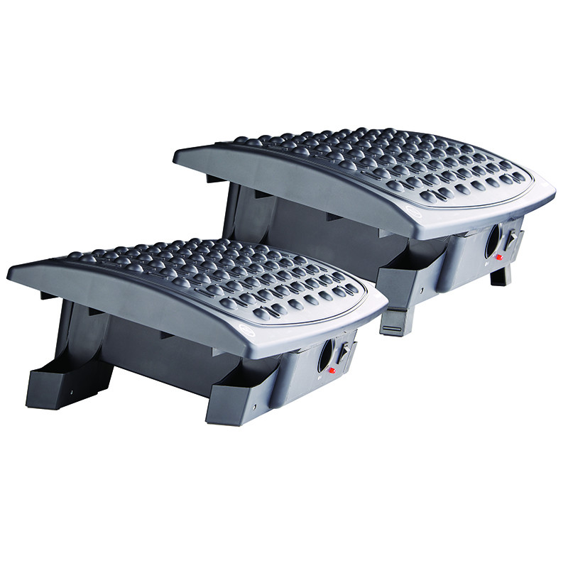 Halkfritt fotstöd med inbyggd fläkt som kan ställas in på låg värme, hög värme eller kall luft. Ytan är försedd med knoppar som ger behaglig massage under fötterna. Fotstödet har 3 nivåer (10.5/12/13.5cm) och kan justeras i en vinkel på 0-30 grader för att användaren ska uppnå optimal arbetsposition. Automatisk ’Auto-off’ efter 8 timmar. Sladd 1,25 m
