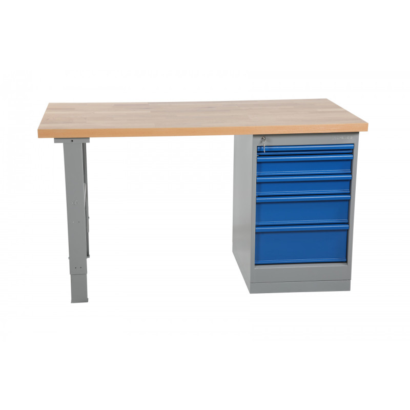 Extra kraftigt arbetsbord för tung hantering. Levereras med stryktålig bordsskiva för att klara riktigt tunga och smutsiga arbeten. Maxbelastning på 500kg jämnt fördelat över bordets yta. Levereras komplett med benbockar. Bordsskiva i trä från FSC-certifierade skogsbruk.