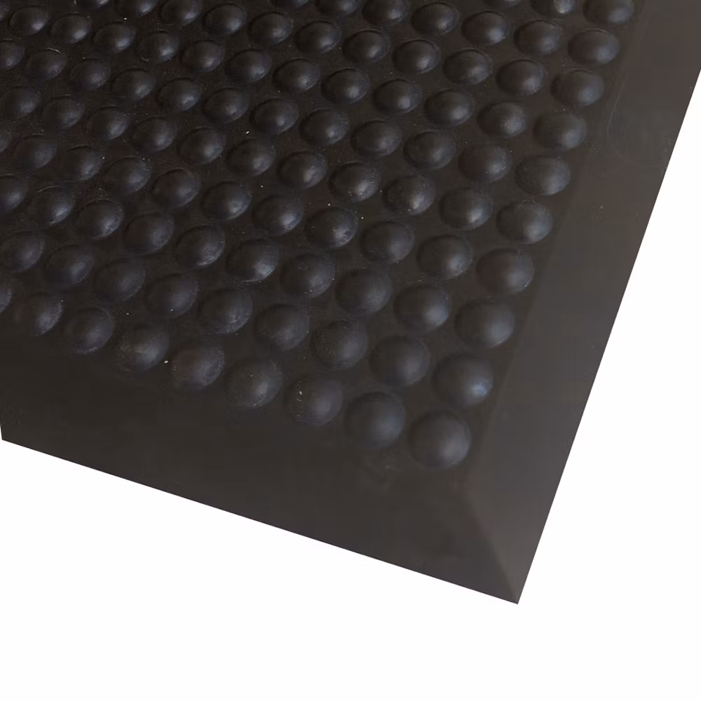 Den bubbelformade ovansidan ger en naturlig svikt som stimulerar blodcirkulationen och minskar belastningen pÄ fötter, ben och rygg. Det gör mattan lika ergonomisk som den Àr tÄlig. De fasade kanterna minskar snubbelrisken och gör det lÀttare att rulla upp vagnar och utrustning.