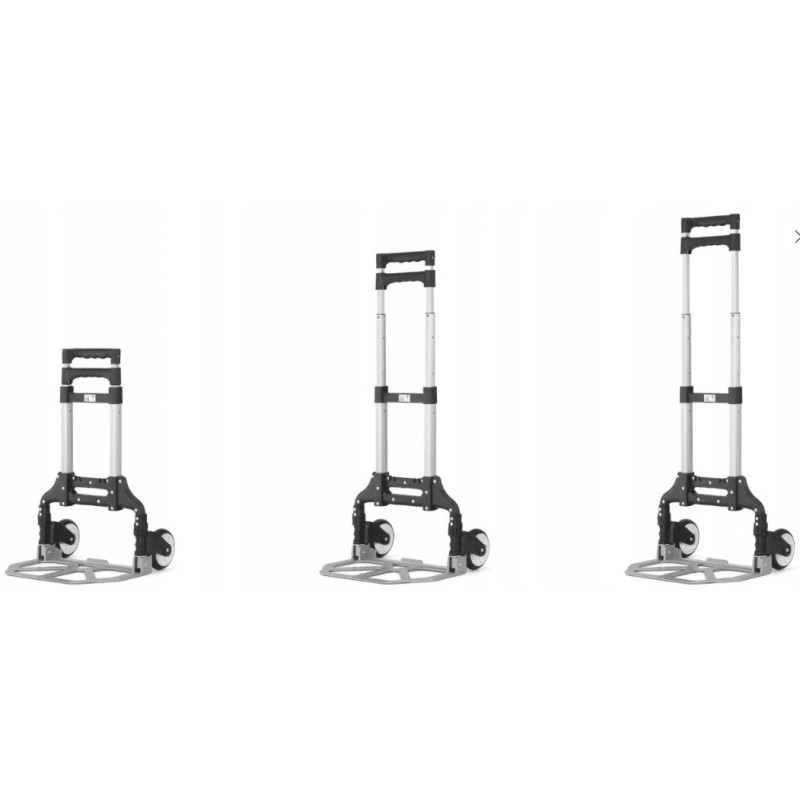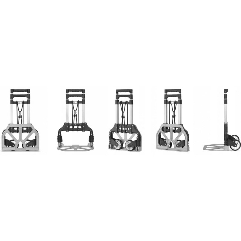 En kompakt och lätt hopfällbar pirra tillverkad i aluminium med praktiskt gummiband. Perfekt för flytt av kartonger, paket och gods på lager, kontor eller vid transport.