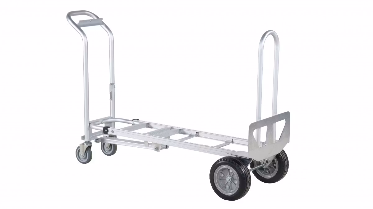 Den här kombikärran i aluminium är utvecklad för att ge maximal flexibilitet i vardagens transporter. Med tre olika lägen kan du enkelt anpassa kärran efter lastens storlek och vikt. Den är lätt att manövrera, enkel att justera och byggd för att klara både snabba lyft och tunga arbetsmoment.