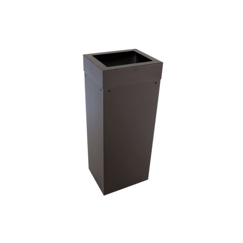 Rymlig 90 L avfallstunna i svart metall med fyrkantigt inkast och hjul. Döljer sĂ€cken och passar 125 L sĂ€ck. Leveranstid 5â7 dagar.