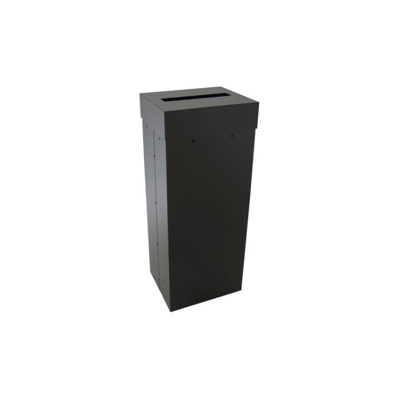 Avfallstunna Ivar 90 L i svart metall med rektangulärt inkasthål för papper. Hjul för enkel förflyttning. Passar 125 L säck.