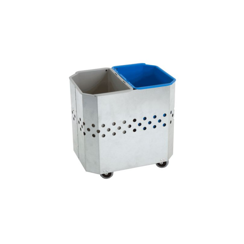 Praktisk avfallstunna i zink med två diskbara innerkärl (2x9 L). Perfekt för hotell, kontor och personalutrymmen. Enkel att flytta tack vare hjul.