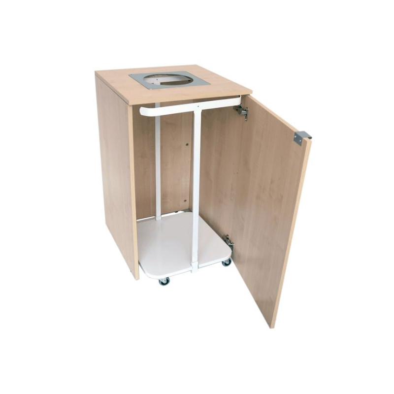 Upptäck Diana i björk – ett smakfullt och funktionellt källsorteringsskåp i ljus björklaminat som effektivt döljer 125‑liters sopsäcksvagn. Skåpet har en diskret dörr för smidigt påsbyte och en avtagbar metallring under locket för hygienisk rengöring. Stabil botten med justerbara fötter kan enkelt kompletteras med hjul för smidig förflyttning vid städning. Leveranstid: 5–7 dagar.