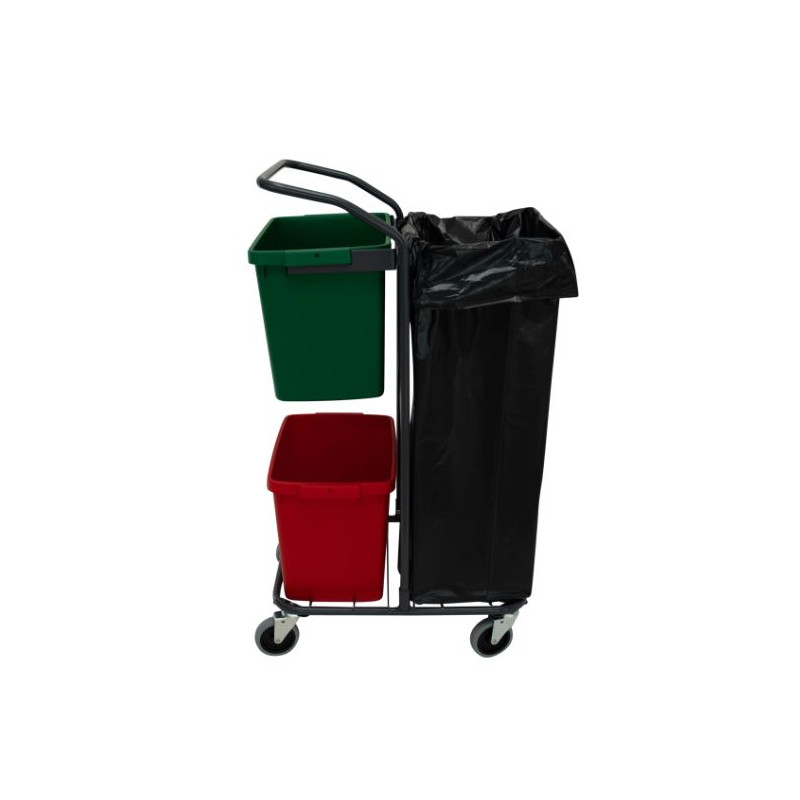 Komplett sorteringsvagn med två 25 L plastkärl och säckhållare. Ergonomiskt handtag, flexibel och lätt att använda. Leveranstid 5–7 dagar.