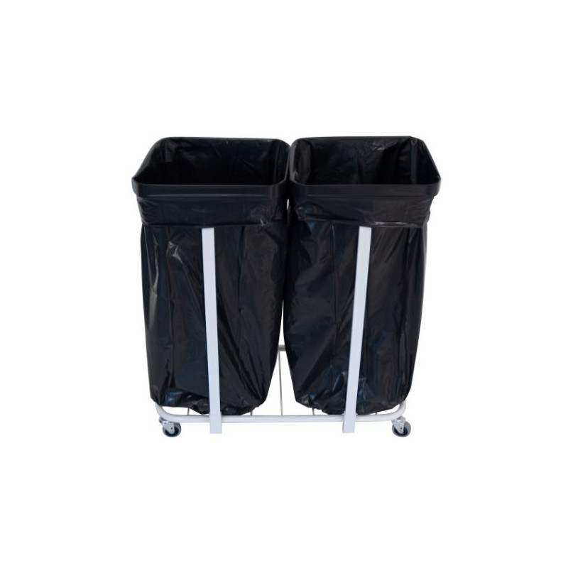 Säckvagn Dubbel 60–70 L är en praktisk och robust sopsäcksvagn med två separata säckhållare. Perfekt för att källsortera två olika fraktioner med plast- eller pappsäckar på 60–70 liter. Med fyra lättrullande hjul är den enkel att flytta mellan olika arbetsplatser. Lock finns som tillbehör (art.nr 11751).