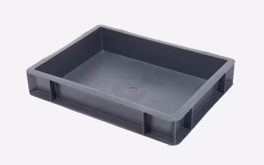 Den låga höjden och de praktiska måtten gör lådan enkel att stapla, hantera och integrera i befintliga system.