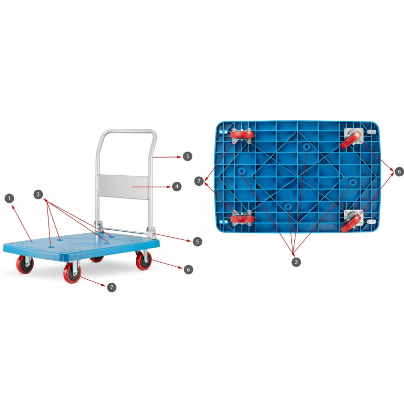 Tack vare de tystgående polyuretanhjulen blir vagnen smidig att manövrera även i trånga utrymmen, och den fällbara designen gör den enkel att förvara. Perfekt för lager, butiker, verkstäder och industriella miljöer.