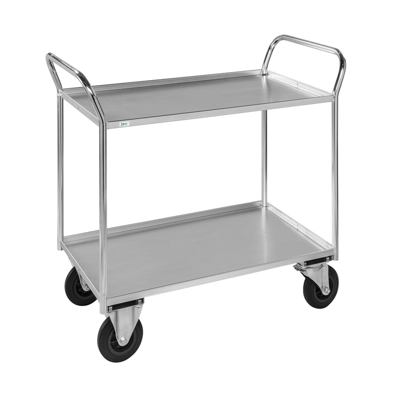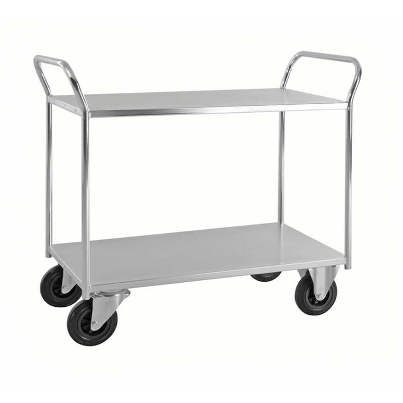 Helsvetsad robust plåtvagn i 2 plan utan och med kant. Lämpar sig för de tyngre lasterna i de riktigt tuffa miljöerna. Finns som standard i 6 modeller.