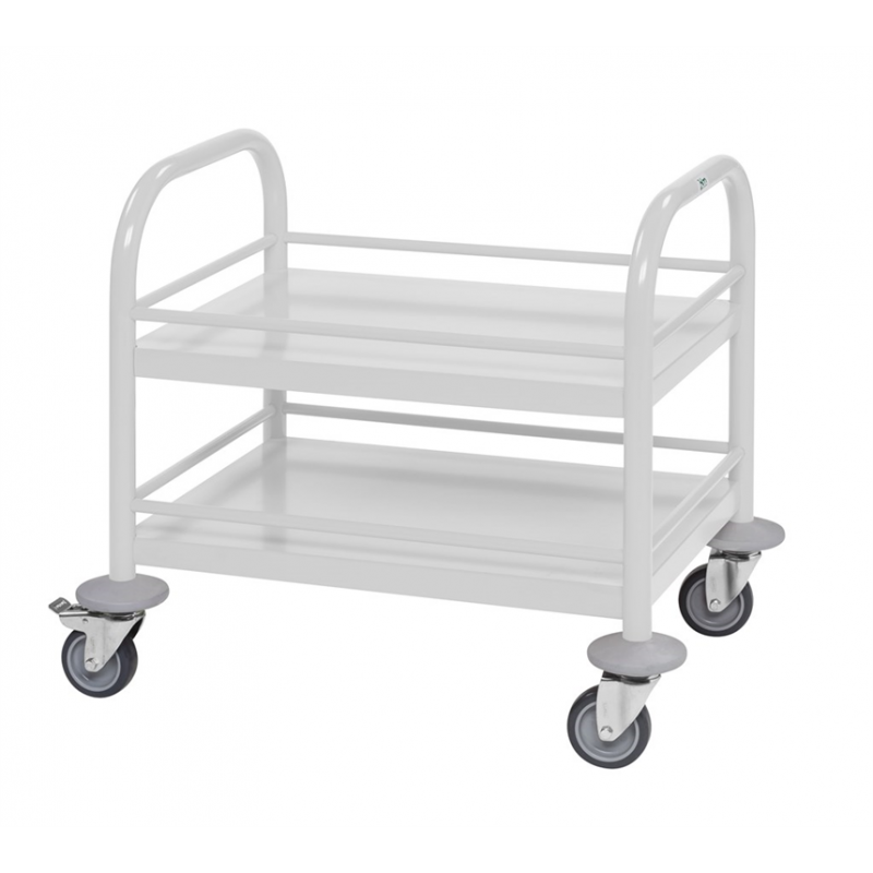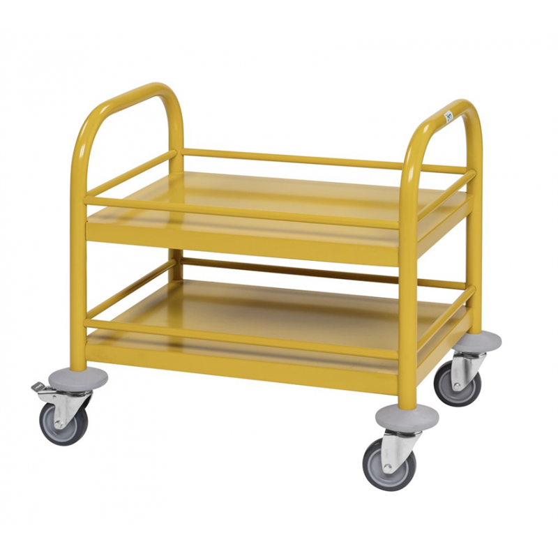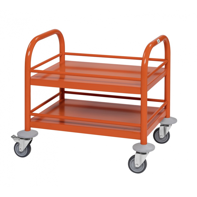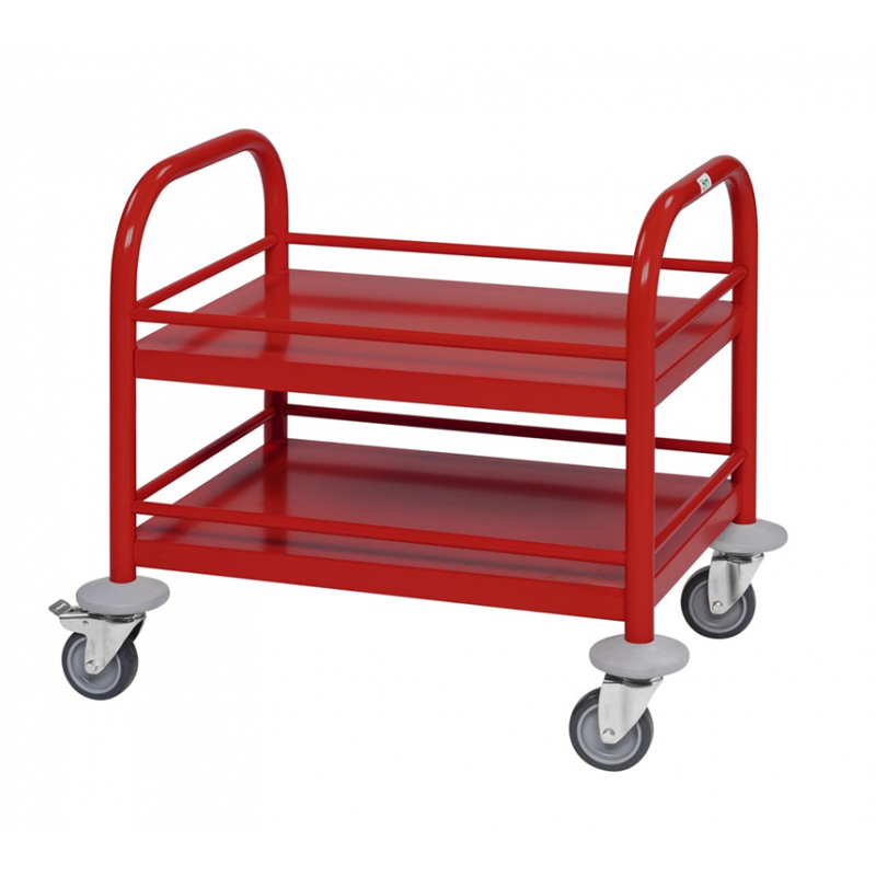 Pulverlackerad. Anpassad för barn i förskolor. 2 hyllplan. Avstånd mellan hyllplan: 160 mm. Maxlast hyllplan: 40 kg. Hjul: 4 länk varav 2 med broms. Hjuldiameter: 75 mm.