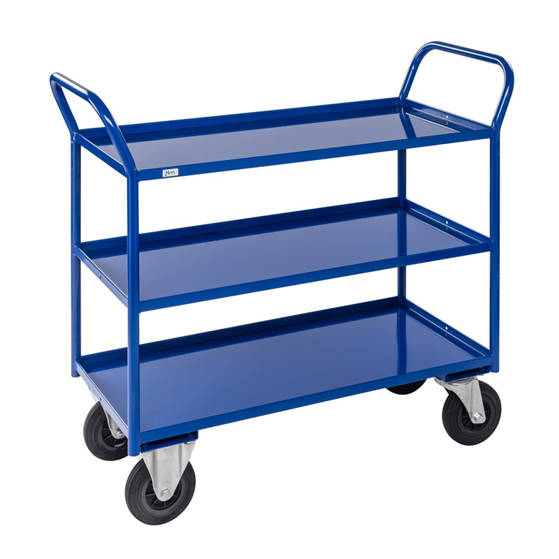 Helsvetsad robust plåtvagn i 3 plan utan kant och med kant. Lämpar sig för de tyngre lasterna i de riktigt tuffa miljöerna. Finns som standard i 6 modeller.