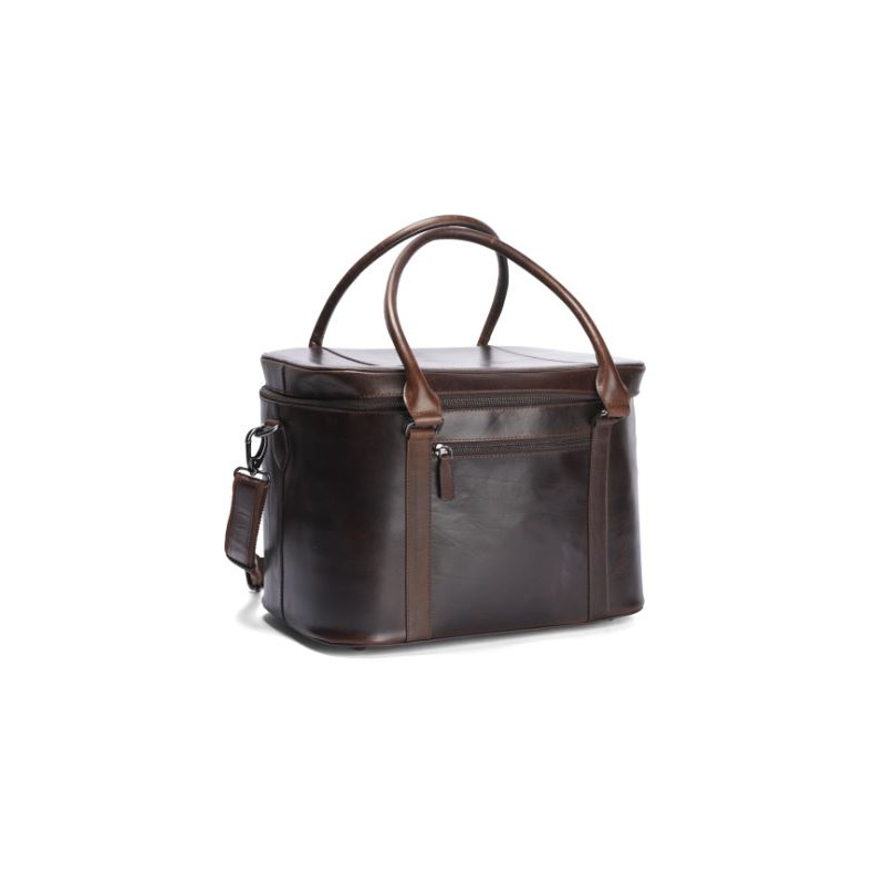 Cab Tylösands kylväska i skinn brun. Kylväska i exklusivt skinn, tillverkad i en klassisk design. Kylväskorna har ett utvändigt fack som stängs med dragkedja. I serien ingår en kylryggsäck och en kylväska samt en bag inbox som håller ditt vin kallt. Skinnet ger optimal kylförmåga ihop med invändig foliebeklädnad.