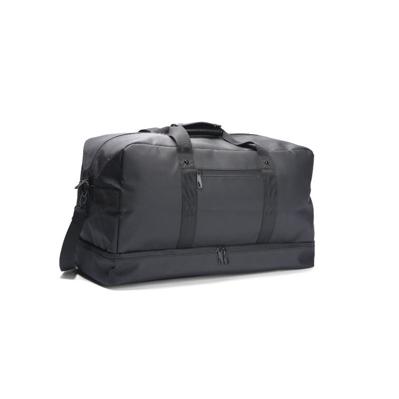 Weekend bag Bergen i canvas svart. Cab Bergen är en kollektion funktionella väskor som är praktiska, smidiga och som rymmer dina viktigaste prylar oavsett om du är på väg till jobbet eller till dagsutflykten på stranden. Alla produkter är tillverkade i det slitstarka och vattenavvisande materialet Polyester PU Coated 600D.