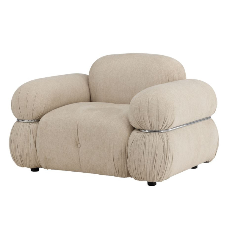 Den mjuka, beige klädseln skapar ett varmt och harmoniskt uttryck som enkelt smälter in i olika inredningsstilar, medan silvriga detaljer tillför en elegant, samtida touch. Mika passar lika bra som komplement till soffgruppen som ett självständigt statement i läshörnan eller loungen.