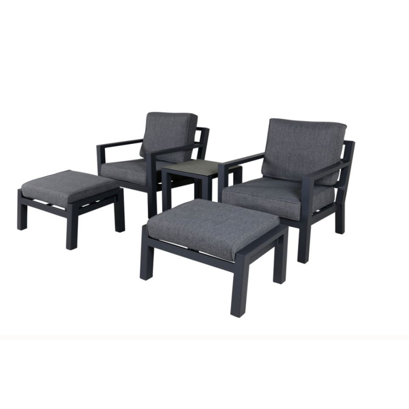 Skapa ett blickfång som imponerar med ett bekvämt loungeset från serien Barcelona. Bestående av två loungestolar i robust design tillverkade av svart aluminium och ett tillhörande bord med en toppskiva i stilrent glas. Slitstarka dynor i svart kulör ingår. Bordets mått: 50x50x50 cm. Stolens mått: 159x84x77 cm. Sittmått: 63x55x31 cm. Ingen montering krävs. Här kan du koppla av och njuta av sommarens uteliv på altanen! Skötselråd: Utemöbler i aluminium och rostfritt stål bör rengöras regelbundet med vatten och mild tvål. Skölj alltid noggrant med rikligt med vatten, något som blir extra viktigt om möblerna är placerade på ett havsnära avstånd där salt kan transporteras via luften.