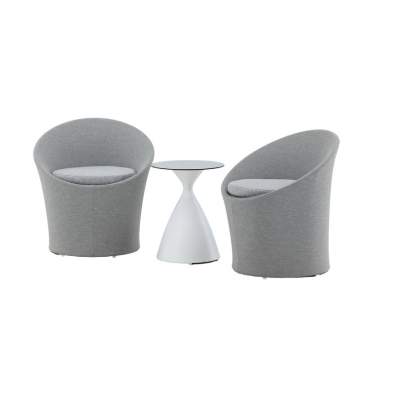 Detta nätta loungeset i vitt och grått kommer med två bekväma stolar med tillhörande dynor och ett lätt bord som du enkelt förflyttar. Den tidlösa designen gör att det är kompatibelt i många miljöer och passar lika bra på den stora terassen som den lilla uteplatsen. Ett mysigt loungeset där du kan njuta av en kopp kaffe en varm morgon i solen!