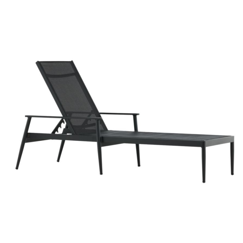 För en solig dag med en bok eller en podcast passar BREAK perfekt. Solsängen är gjord i svartackerad aluminium och textilene med ett justerbart ryggstöd, hitta den bästa vilopositionen för dig. Koppla av och njut!