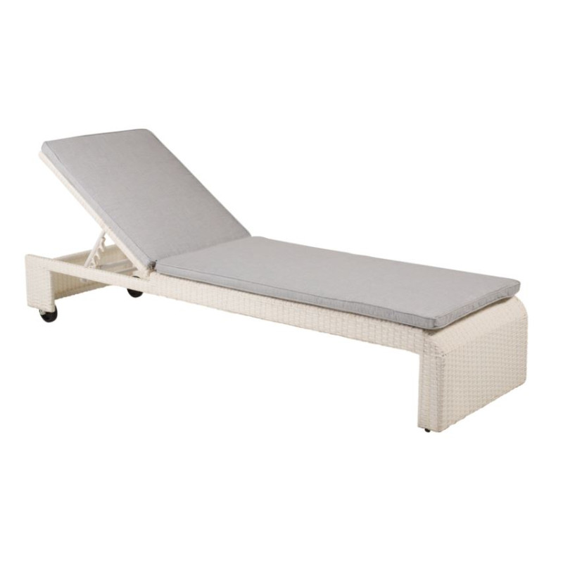 Modern, stilren och pampig solsäng från serien London skapar ett trivsamt blickfång på din uteplats. Här får du en krämvit solsäng med grå dyna, hjul och justerbart ryggstöd för optimala vilopositionen. Solsängen är tillverkad av svart konstrotting vilket gör den slitstark i utomhusmiljö. Här kan du njuta länge av lediga stunder på sommarens soliga dagar! Skötselråd: Konstrotting är ett plastmaterial som passar alldeles utmärkt för vårt skandinaviska klimat. Materialet är UV-beständigt och tåler väder och vind. Att det är UV-beständigt gör att möblerna inte bleknas, däremot rekommenderar vi alltid att förvara möblerna under ett möbelskydd eller på annat vis torrt och svalt – för att förlänga livslängden.