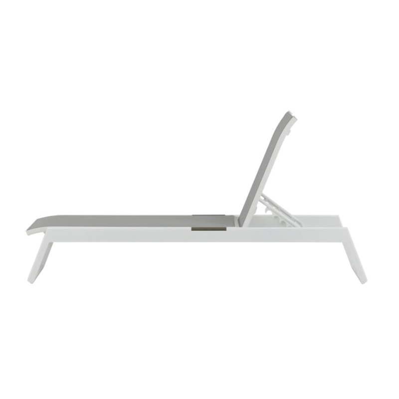 Klassisk solsäng i vit aluminium och grå textilene. Solsängens ryggstöd går...