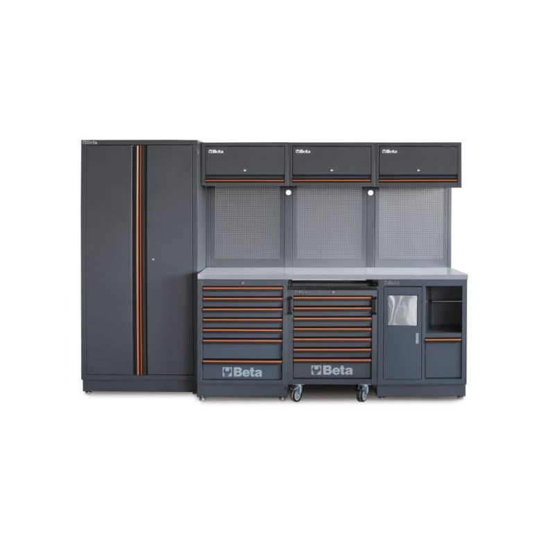C45PRO 2.0 X är en komplett och modulbaserad verkstadsinredning från Beta Tools, designad för professionella verkstäder, servicecenter och industrimiljöer. Med totalt 10 moduler, smarta förvaringslösningar och en slitstark arbetsbänk i rostfritt stål får du en organiserad och effektiv arbetsplats.