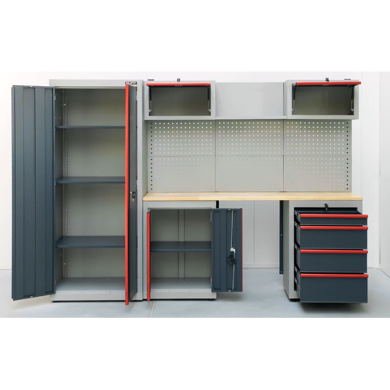SEJFTI ALFA 12 – komplett set med verkstadsmöbler för garage eller verkstad. Inkluderar skåp, arbetsbänk, verktygstavlor & hyllor. Prisvärd & robust kvalitet.