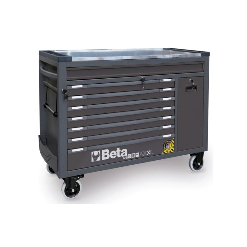 Beta Tools RSC24AXXL – extra stor verktygsvagn med 8 lådor, anti-tilt-system, rostfri arbetsbänk och 1100 kg lastkapacitet. Perfekt för tung industri & verkstäder.